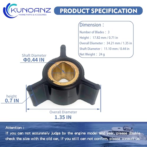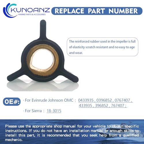 ????OEM#??Replacing part numbers For Evinrude Johnson OMC 0433935 0396852 0767407 Sierra 18-3015,perfectly match. ????High Quality??Original level of quality and durability, the impellers are manufactured from high quality rubber and will not be damaged even after long periods of immersion in salt water. ????Buy With Confidence??Highly rigid cardboard boxes and foam wool packaging ensure that your order is in mint condition before you receive it. ????Inquiry Service??Check your engine part number before you buy. If you're not sure, send us a message. We'll help you find the right part number for your engine. ????Tips??We will show more detailed information about the product on the details page below to ensure that we can help you to buy the correct replacement part.
