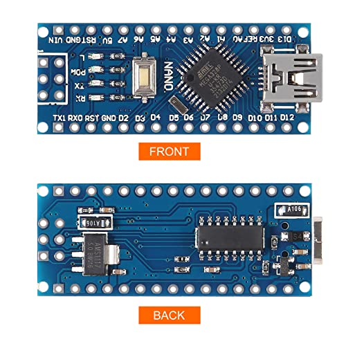 The Nano can be powered via the Mini-B USB connection, 7-12V unregulated external power supply (pin 30), or 5V regulated external power supply (pin 27). The power source is automatically selected to the highest voltage source. Input and output: each of the 14 digital pins on the Nano can be applied as an input or output; Some pins have special functions Nano's got the breadboard-ability of the Mini+USB with smaller footprint than either, so users have more breadboard space. It's got a pin layout that works well with the Mini or the Basic Stamp (TX, RX, ATN, GND on one top, power and ground on the other). ATmega328P chips: using Atmega328P-AU MCU, support ISP download, using the same chips ATmega328P and CH340 with the official version Nano V3.0 ATMEGA328P improved version with 3pcs pin headers. No welding needed.