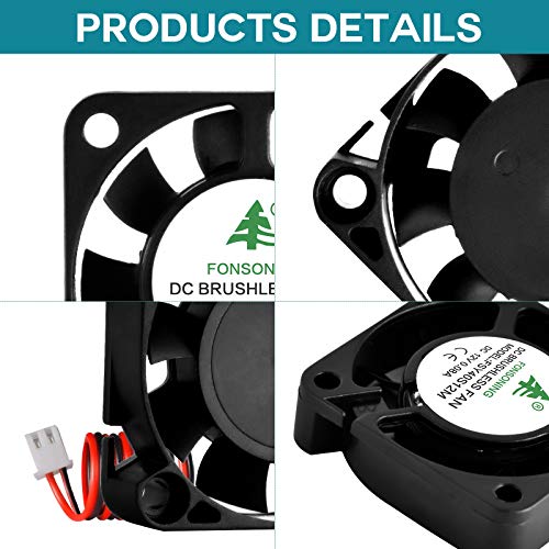 ?Parameter? Voltage: DC 12V, Working Current: 0.08A, Motor Power: 0.96 W, Temperature of usage environment: -10? to +70?. When you use them, pls don't exceed this range!! 2. If the noise is too big and you want the fan to be muted, please connect a 47 ohm resistor in series with the circuit to adjust the voltage to 12 V 0.05 A. ? Application?Used for cooling on hot end - 3D Printers, DVR or other cooling needs. Air Volume: 5.75±10% CFM; Rotational speed: 5600±10% (r/min); Wind blade diameter: 36 mm. ?Variety Of Size?40mm Fan - Size: 40 mm x 40 mm x 10 mm (1.57 inch x 1.57 inch x 0.39 inch); Cable length: 280 mm (11.02 inch). Connector: 2.54-2P Connector. ? Durable?With high performance, long life and low noise. Noise: 26 dBA; Certification: CE,UL,CUL. ? Quality Assurance? The copper jacket of the our fan contains oil and has a lifespan of 30,000 hours. Besides, we prodive 12- month warranty.