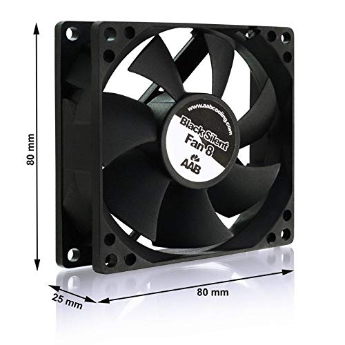AAB Cooling Black Silent Fan 8 - Silent and Efficient 80mm Fan with 4 Anti-Vibration Pads, PC Fan, Quiet Fan, Cooling Fan, Air Cooler, Case Fan - Value Pack 3 Pieces