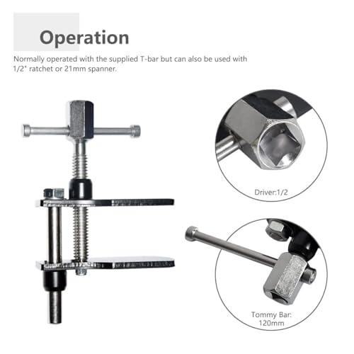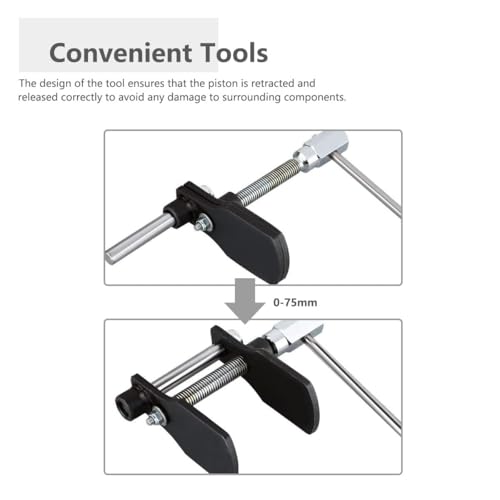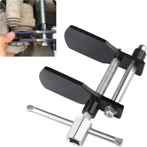 Brak Pad Replacement: Simplify brake pad replacement like never before with our brake caliper compression tool! Quickly adjusts the brake pump and used to push back the brake piston, and replace the brake pads or plates, and brake the brakes & automotive brake cylinder, and install the brakes. A must-have tools in your car tool kit! Durable Material: This brake caliper tool is made of alloy steel forged with high hardness and toughness, thickened steel plate, large contact surface, and chrome-plated surface of the handle rod which is not easy to rust. Ensure that it will not be deformed under the wear and tear of prolonged use and repeated operation, and will not damage the brake components. Exquisite Screw Thread: Our brake pad spreader is made with finely crafted threads that are regular and neat, and the even force ensures seamless and easy operation, allowing you to use it with unparalleled smoothness. Used for brake piston hydraulic adjustment brake pump, it is a good companion for your car brake repair and maintenance. Easily to Use: Caliper piston compressor tool measures 6.7x5.06x2.01 inch and the steel plates measures 4.57x2.01 inch. Some pistons need to rotate under pressure and can be installed into a forked caliper using a reaction plate and guide screw. The chrome-plated handle bar that comes with it can also be used with a 1/2" drive ratchet or a 0.83" wrench. Widely Compatible: The brake pad spreader tool is suitable for most cars, motorcycles, trucks, SUVs on the market. Please check the product information carefully before purchasing to ensure a satisfactory shopping experience.