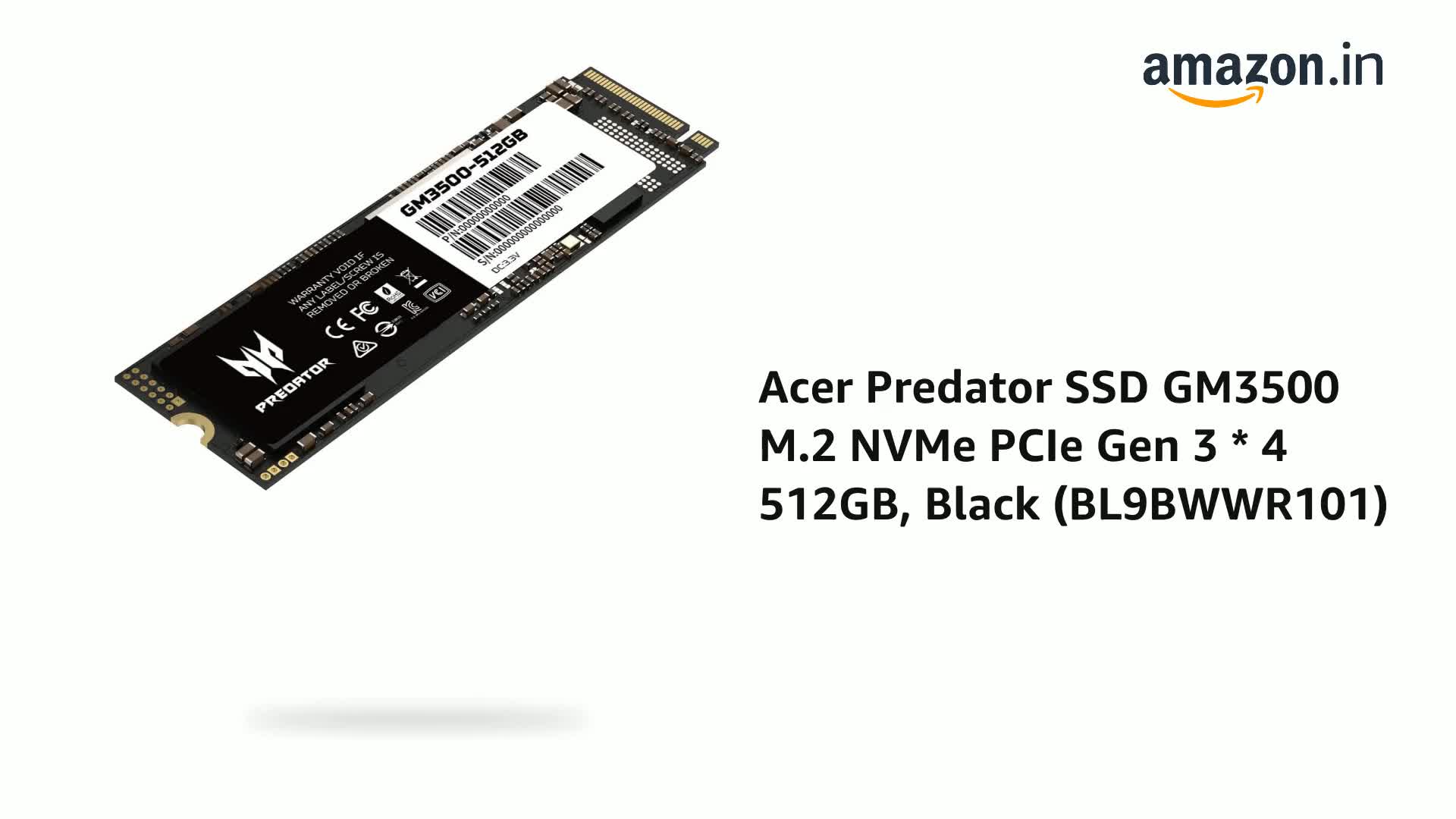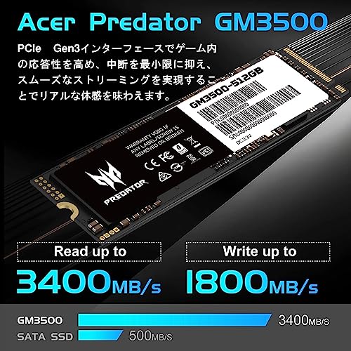 Acer Predator SSD GM3500 M.2 NVMe PCIe Gen 3 * 4 512GB, Black (BL9BWWR101)