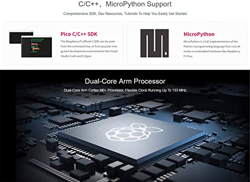 Adeept Raspberry Pi Pico with Pre-Soldered Header and USB Cable, Microcontroller Mini Development Board, Based on Raspberry Pi RP2040 Chip, Dual-Core ARM Cortex M0+ Processor