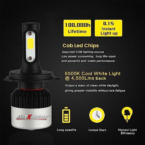 CRISP 6500K COOL WHITE LIGHT: The LED chips used in this AllExtreme headlight conversion kit emit a crisp 6500K cool white light, which closely resembles natural daylight. This colour temperature not only provides excellent visibility but also reduces eye strain and fatigue during long drives, offering a comfortable driving experience. SUPER BRIGHT AND HIGH VISIBILITY: With a power output of 72 watts and a brightness of 9000 lumens, this LED light bulb offers exceptional brightness and visibility on the road. The super bright output ensures that you have clear visibility, even in dark or adverse weather conditions, enhancing your safety and reducing the chances of accidents. ENHANCED DRIVING EXPERIENCE: The LED chips used in this conversion kit emit a 6500K cool white light, which closely resembles natural daylight. This colour temperature provides a crisp and clear illumination, allowing for better colour recognition and reducing eye strain and fatigue during long drives. It offers an enhanced driving experience by providing a comfortable and pleasant lighting environment. RELIABLE PERFORMANCE AND DURABILITY: The AllExtreme LED headlight conversion kit is built to withstand the rigours of daily use. Made with improved quality materials, these headlights offer excellent heat dissipation capabilities, ensuring long-lasting performance and preventing overheating. The durable construction and top-notch quality components make them resistant to shocks, vibrations, and weather conditions, ensuring reliable operation in various driving situations. EASY INSTALLATION: Installing the AllExtreme LED headlight conversion kit is a hassle-free process. The kit comes with all the necessary components and clear instructions, making the installation straightforward and user-friendly. You can easily replace your existing halogen bulbs with these LED bulbs without any complex modifications or additional tools, saving you time and effort.