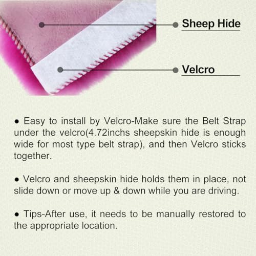 1.?Relaxing and Comfortable?Prevent rubbing on neck and shoulders. Fluffy Fuzzy sheepskin seat belt cover protect you against the rubbing of the seatbelt, or interference with a implanted medical device, improve the comfort of your trip and can prevent bruising in car accidents. Great for protecting your neck, shoulder, collar bones, chest from the seat belt. No more neck or shoulder discomfort for adults or kids 2.?Multi-function?Seat belt pads can be used for belt of car,trunk,jeep,SUV,airplane, and this shoulder strap cover has multiple uses besides the driver of passenger side of your automobile. You can use it with handbag, golf bag, Guitar, camera, luggage, laptop cases, backpacks or duffel bags which with a strap. Adding comfort to any shoulder strap has never been so easy. 3.?Raw Materials?Australian shearling sheepskin & wool with Natural suede backing. Lambswool seat belt covers are warm in Winter and cool in Summer. Sheepskin is gentle to the touch and won’t irritate your skin and contours to your body’s position for maximum comfort and helps distribute weight evenly taking pressure off arms, shoulders, neck, and legs. It is hypo-allergic and skin soothing, wicks moisture naturally 4.?Multiple Colors?Available in a wide range of colors all made with genuine sheepskin these seat belt covers are the perfect accessory for any road trip cross country or across town. Available in Cream, Bamboo, Stone, Charcoal and Black. Colors on an electronic screen will vary from in person, as well as sheepskin is a natural product and the dye batches may vary as well. 5.?Simple Maintenance?Tightly Vacuum packaged for delivery, However wool is very resilient and will bounce back to their original springy appearance. A vigorous shake or A pet comb to comb and blowing the pad with a hair dryer will also help restore the soft, fluffy appearance. Any fold marks of wool from packaging will disappear after several days, and you will get the fluffy plush effect like the picture. 6.?Dimensions and Installation?Suede backing Size: 9.45? Length x 4.72? Width. Please make the seat belt under the Velcro, and the sheepskin Fits standard seat belts (1.8" - 2"). Make the side of the Velcro facing the window. The side of wool facing neck have soft-to-the-touch comfort for your shoulder or neck. No extra tools required. Just wrap them around the seat belt strap, slides up and down the shoulder strap with ease for complete comfort