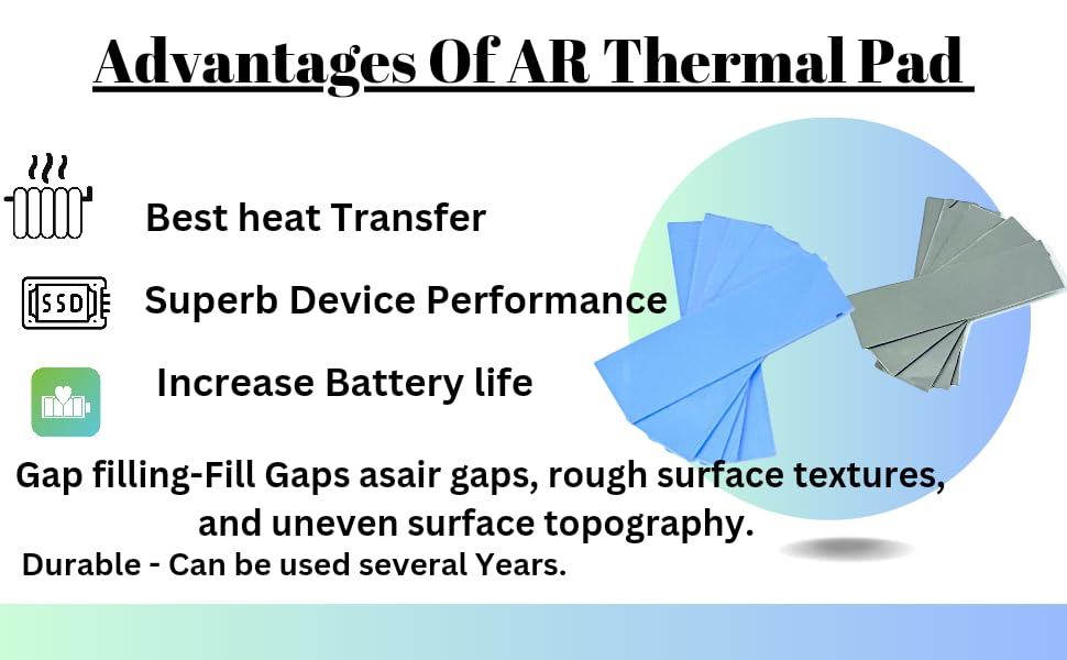 AR 5 Pack Thermal pad (Size- 20x67x0.5mm) thermal Conductive Silicone Pads with 6W/(mK) Conductivity, Soft Safe Simple to Apply for SSD CPU Blue