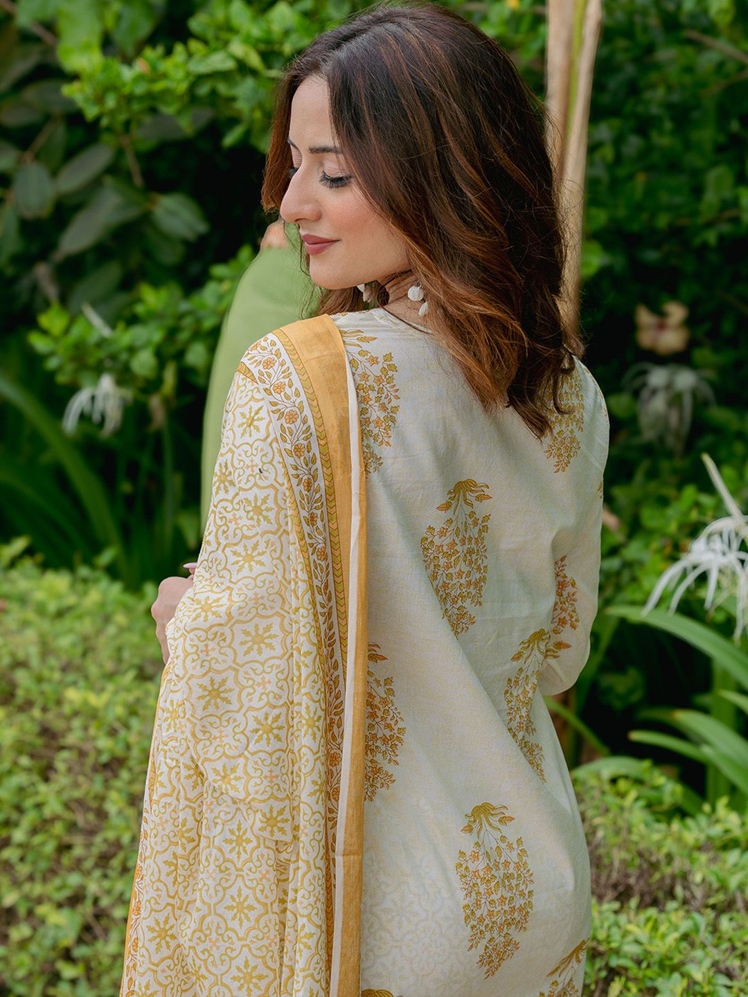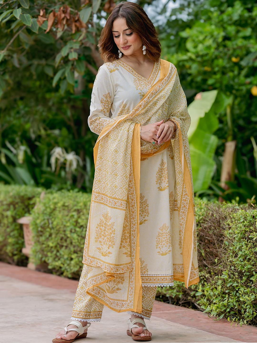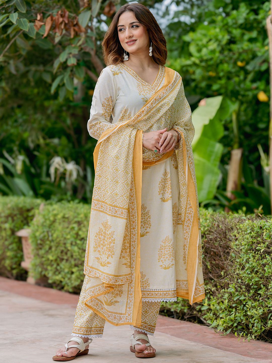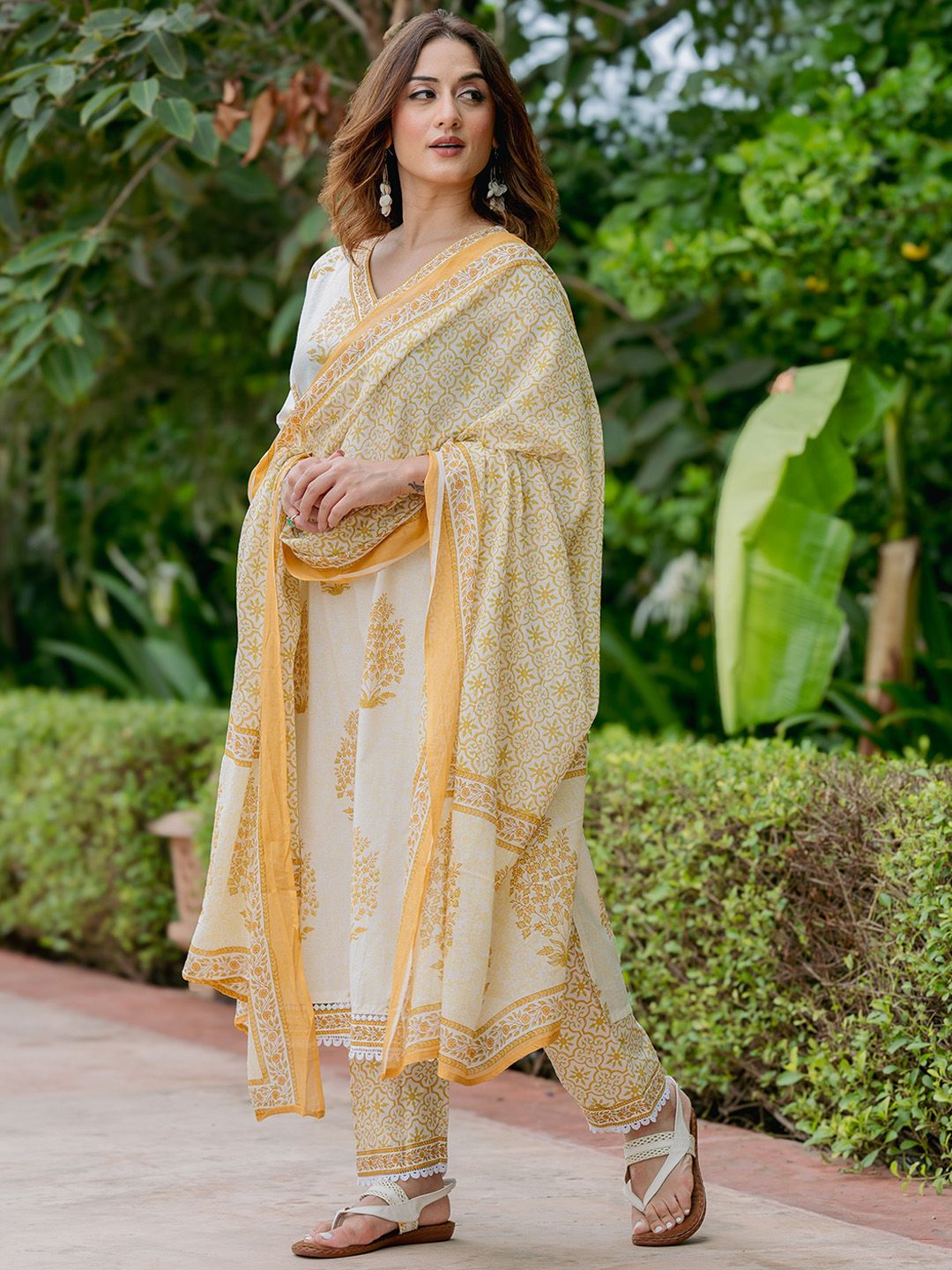 Arayna Women Floral Printed Regular Pure Cotton Kurta with Palazzos & Dupatta