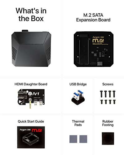EXPLORE POSSIBILITIES --- Take your Raspberry Pi 4 case to another level with included M.2 SATA Expansion Board. Maximize Raspberry Pi 4 SSD use with any M.2 SATA SSD B-Key or B+M Key. ALL DAY, EVERYDAY PERFORMANCE --- Most powerful Argon ONE M.2 case for the Raspberry Pi 4 is designed to provide you with high performance for extended periods. It features passive cooling with an aluminum Pi 4 case and integrated heatsink, as well as active cooling with a PWM 30mm fan. Configureable Argon ONE script to control fan speed and help maintain optimal temperature for the Raspberry Pi 4. EFFICIENT WORKFLOW --- Work efficiently with less clutter and easily access two (2) full sized HDMI display ports and open access to GPIO pins. Neat cable management system on your Raspberry Pi 4 case reduces the risk of damage and improves cable performance. ONE PUSH POWER MANAGEMENT --- Avoid unneccessary damage and data loss due to unplugging RPI 4 directly by using the built-in safe shutdown power button. Protect your data and SD Card with a single push safe shutdown execution. USE RASPBERRY PI 4 LONGER --- Extend the life of your Pi with an aluminum case for Raspberry Pi 4. Protect exposed circuitry while keeping it cool, protected and your table neat. ENJOY SEAMLESS CONTROL --- Extend the reach of your Raspberry Pi 4 with the integrated IR receiver. Easily control the device from a distance while still keeping the safe shutdown execution by using the Argon IR Remote*. *sold separately ENDLESS WAYS TO WORK & PLAY --- Maximize the use of your Raspberry Pi SSD case with various Raspberry Pi OS. Custom Argon ONE script compatible with Raspberry Pi OS, Ubuntu, Kodi/LibreElec, Retropie.
