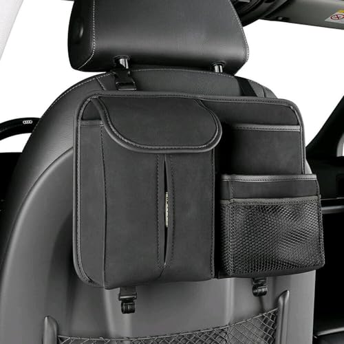 High-quality material : Made of high-quality suede leather, exquisite workmanship, waterproof, scratch-resistant, wear-resistant, easy to clean. So you can comfortably use it without worrying about scratches or stains. When installed on your car, it can enhance your car's overall style. Increased storage space : Excellent storage capacity, you can easily store small items scattered in the car. It can store tissues, beverages, mobile phones, umbrellas, water glasses, cosmetics, baby products, toys, glasses, snacks, newspapers, magazines, etc., to meet your daily needs. 2 Hook Designs : Two high-quality hook designs are added to the bottom of the ERIQKCA organizer bag, which are firm and stable, and can be hung with items you want to hang, such as umbrellas, bags, etc., to increase storage space. Universal : Suitable for most vehicles, best fit for the back seat of a car, truck or SUV. Save space, keep your car tidy and convenient. It is the ideal car interior accessory for those who want a decent storage hanging bag to keep your car neat and organized. Easy to Install : Installation is very simple, no tools are required, just pass the strap through the headrest and lock the buckle. After installation, it will not affect the normal driving, and will not affect the appearance of the car.