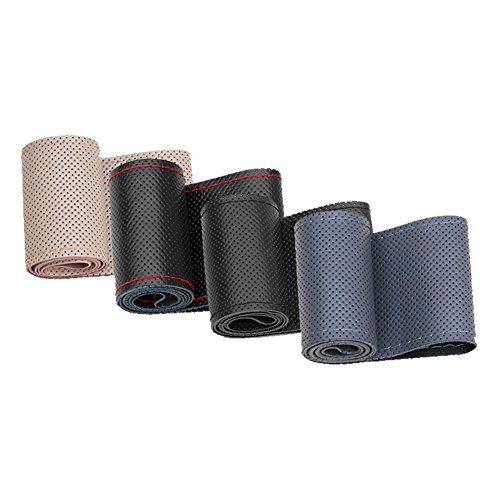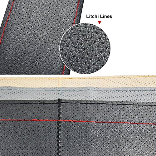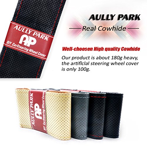 Aully Park Universal Genuine Leather Car Steering Wheel Cover Stitching Style (Size M, Black)