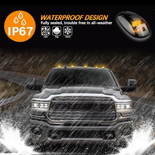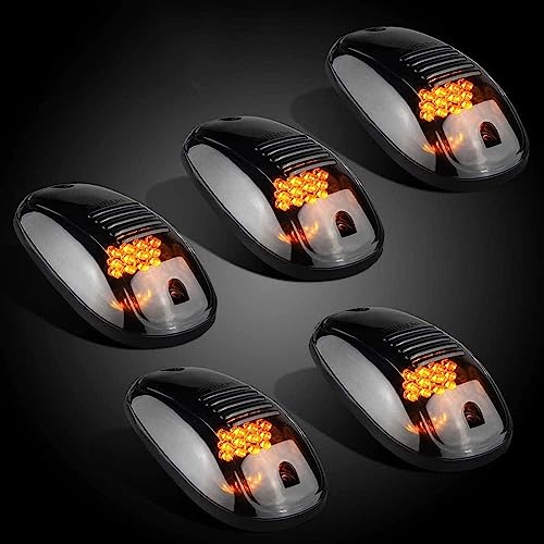 AutoBizarre Set of 5 pcs Smoked Lens Amber/Yellow/Orange Emergency Clearance Warning Strobe Light Cab Roof Top Marker Running Lights For All Cars, Vans, Trucks, Pickup, SUVs, 4x4 Off Roading Cars