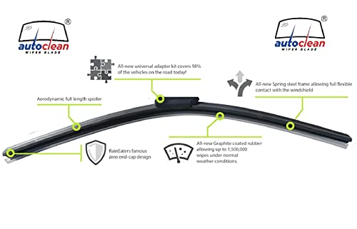 WIPER SPECIFICATION - FIT IN KWID , SIZE - (D)22" QUANTITY:1 pieces -1 driver side wiper ITEM : genuine auto clean hybrid premium all season wiper blade. FITMENT:- u hook type (direct oem replacement). MATERIEL:- premium natural rubber with DU PAINT teflon coating. DESIGN:- hybrid type wiper. TEMPERATURE:- +70 c to -20 c AUTO CLEAN wiper feature and benefit benefit include:- OEM REPLACEMENT:- quality and fitment are guaranteed all season wiper blade eliminate the need for a winter or summer blades. durable material offer longer performance life over other conventional wiper blades specially blended rubber delivers the ultimate smooth, clean,steak free wiper flexible spine design fit the windshield better, providing superior windshield contact. it is highly recommended to get your vehicle's wiper blade replaced before it get too let and end changing you vehicle windshield.
