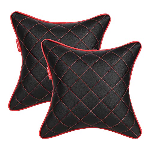 AUTOFIT Double Quilted Universal Car Cushion + Neck Rests (Black and Red) -Combo pack of 4 Piece, Polypropylene Cotton