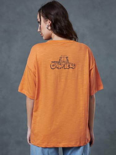 Bewakoof Air 1.0 Official Garfield Merchandise Women's 100% Cotton Graphic Print Oversized Fit Round Neck T-Shirt