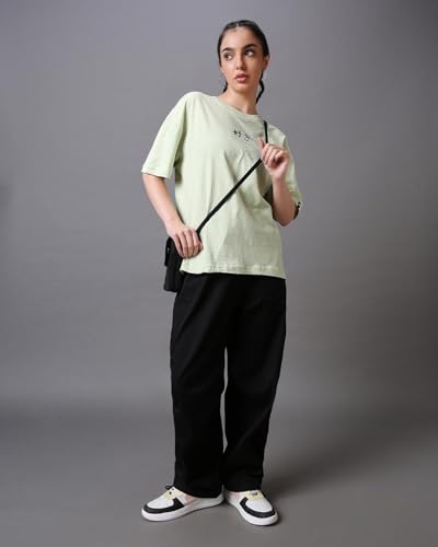 Bewakoof Air 1.0 Women's Graphic Printed Oversized Fit Half Sleeve Round Neck Cotton T-Shirt