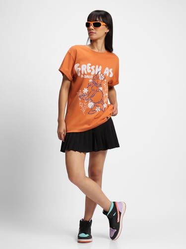 Bewakoof Official Disney Merchandise Daisy Duck Women's 100% Cotton Graphic Print Boyfriend Fit Round Neck T-Shirt