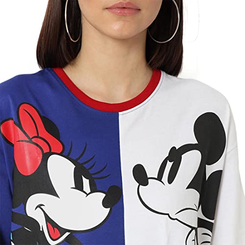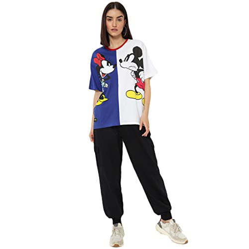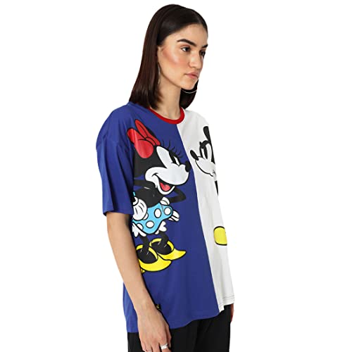 Bewakoof Official Disney Merchandise Mickey and Minnie Women's 100% Cotton Oversized Fit Round Neck T-Shirt