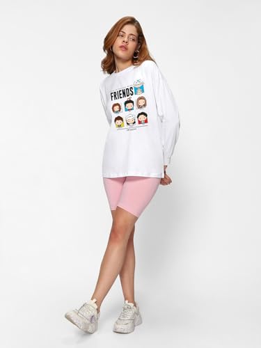 Bewakoof Official Friends Merchandise Women's 100% Cotton Graphic Print Oversized Fit Round Neck T-Shirt