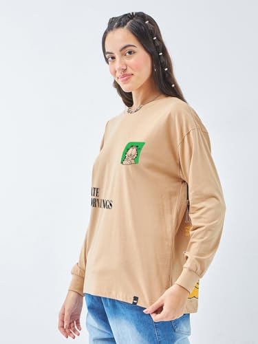 Bewakoof Official Garfield Merchandise Women's 100% Cotton Graphic Print Oversized Fit Round Neck T-Shirt