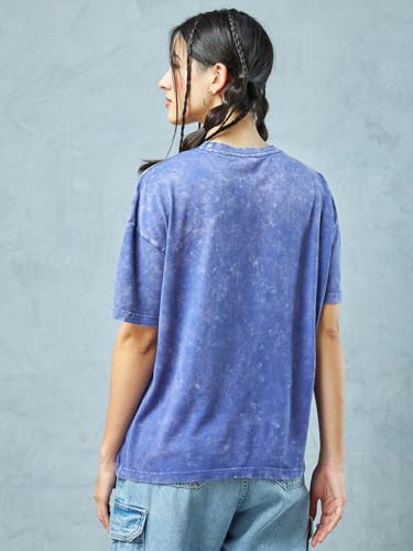 Bewakoof Official Harry Potter Merchandise Women's Graphic Printed Oversized Fit Half Sleeve Round Neck Cotton Jersey Acid Wash T-Shirt