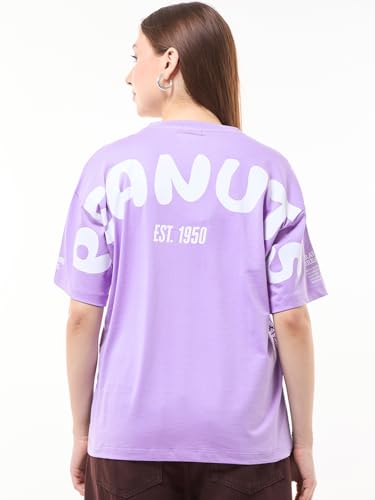Bewakoof Official Peanuts Merchandise Snoopy Women's Graphic Print Oversized Fit Half Sleeve Round Neck Cotton Jersey T-Shirt