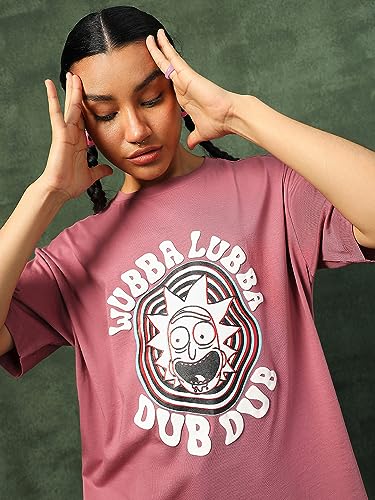 Bewakoof Official Rick and Morty Merchandise Women's 100% Cotton Graphic Print Oversized Fit Round Neck T-Shirt
