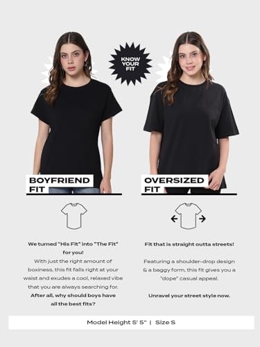 Bewakoof Women's 100% Cotton Graphic Print Oversized Fit Round Neck T-Shirt