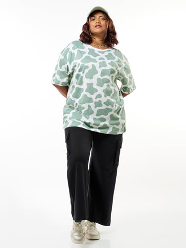 Bewakoof Women's 100% Cotton Oversized Fit Round Neck Plus Size T-Shirt