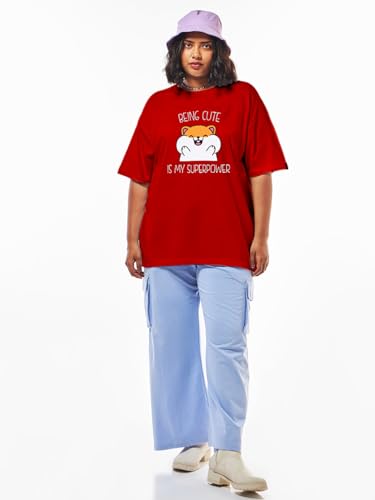 Bewakoof Women's Graphic Print Oversized Fit Half Sleeve Round Neck Cotton Plus Size T-Shirt
