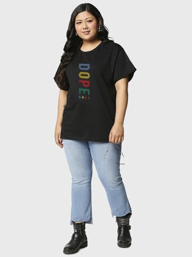 Bewakoof Women's Graphic Printed Boyfriend Fit Half Sleeve Round Neck Cotton Jersey Plus Size T-Shirt