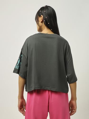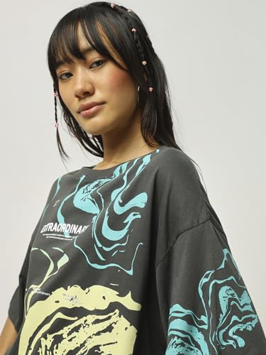 Bewakoof Women's Graphic Printed Oversized Fit Half Sleeve Round Neck Cotton Short Top