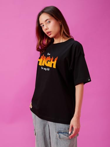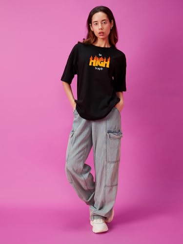 Bewakoof Women's Typography 100% Cotton T-Shirt - Oversized Fit, Round Neck, Half Sleeves