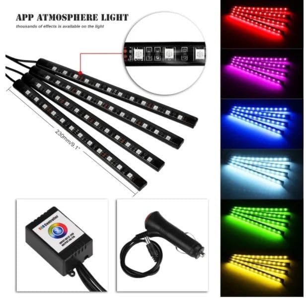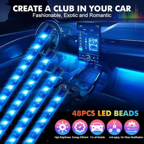 Bluetooth Atmosphere Light for Car Interior, Multicolor App Controlled 48 LED Atmosphere Light,Music Controlled (with Bluetooth)