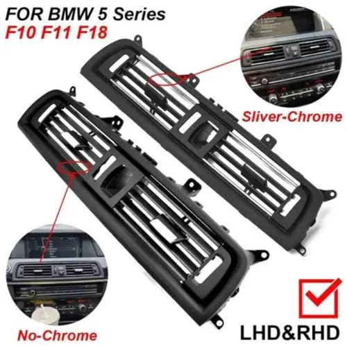 Car Craft Compatible With Bmw 5 Series F10 F18 F90 2010-2017 6 Series F06 F12 2012-2016 Ac Air Vent Grill Trim Frame Cover Black With Chrome Front Centre 64229209136 64229197489 CC-306