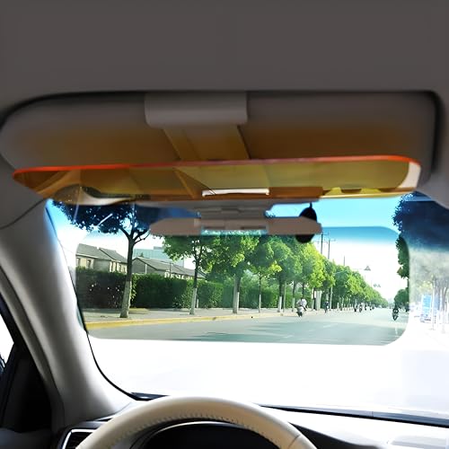 2-IN-1 DAY & NIGHT VISOR PANEL: Equipped with dual panels—gray for daytime sunlight and yellow for night driving. Reduces glare from sunlight and high-beam headlights to improve visual clarity and driving comfort. ANTI-GLARE and UV BLOCKING: Blocks harmful UV rays and filters intense light to protect your eyes during both day and night. Reduces eye strain and helps prevent temporary blindness from oncoming traffic glare. UNIVERSAL FIT FOR MOST VEHICLES: Easily attaches to most car visors with a sturdy clip. Suitable for sedans, SUVs, trucks, and vans. No tools needed for installation—just clip and flip when needed. IMPROVED VISIBILITY and SAFETY: Provides a clearer and more comfortable view of the road by balancing brightness and reducing reflection. Enhances safety during fog, rain, snow, or nighttime driving. FOLDABLE and SPACE-SAVING DESIGN: Fold-down style visor saves space and blends seamlessly with your existing visor. Lightweight, scratch-resistant panels are easy to clean and built for long-term use.