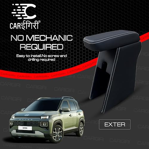Carigiri Premium Car Centre Armrest for Hyundai Exter with High Density Moulded Foam Technology And Storage Compartment (Nappa Leatherette)(Models-2023,2024) (Black With White Double Stitching)