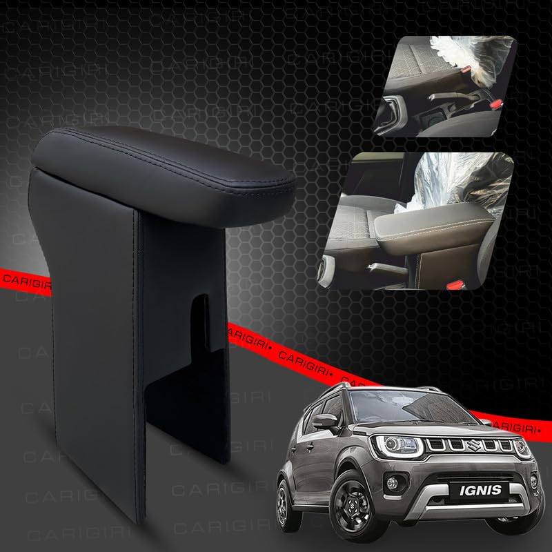 Carigiri Premium Finish Car Armrest with Storage Box And High Density Moulded Foam For Maruti Suzuki ignis (Black with Black Stitching,Nappa Leatherette)