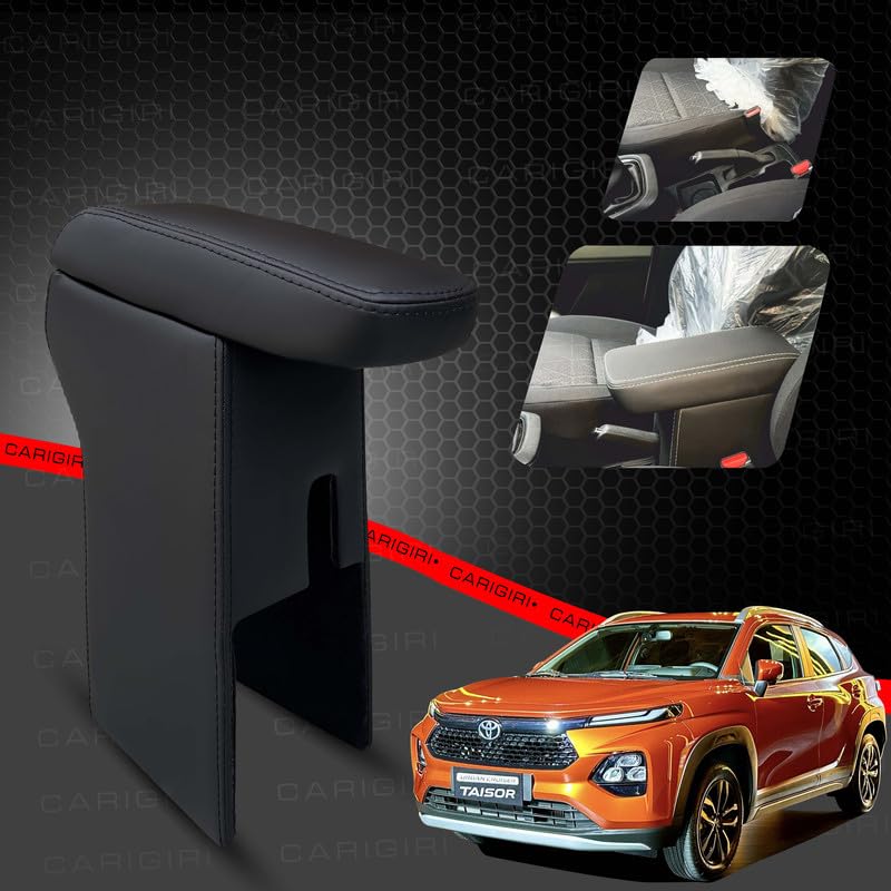 Carigiri Premium Finish Car Armrest with Storage Box And High Density Moulded Foam For Toyota Urban Cruiser Taisor (Black With Black Double Stitching,Nappa Leatherette)(Models 2024)