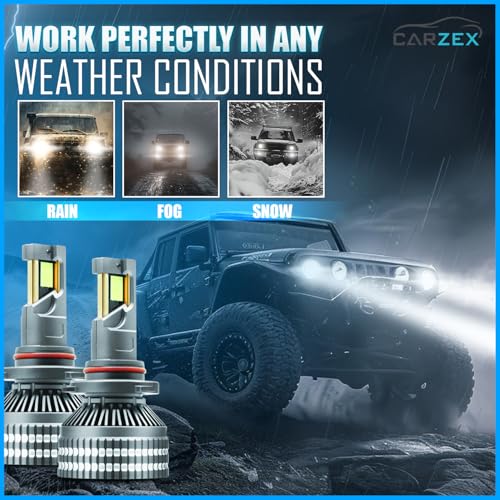 Carzex® Crystal Eye 9005/HB3 LED Projector Headlight & Fog Light Bulbs – 300W (150 Watts x 2), 20,000 Lumens, 6500K Cool White – Super Bright LED Conversion Kit for Cars (Set of 2, 1-Year Warranty)