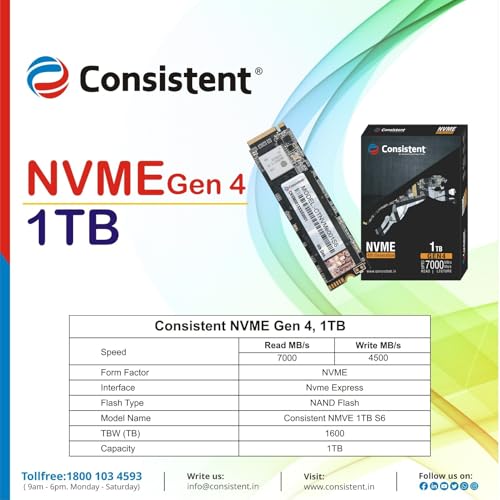 Consistent 1TB SSD Up to 7,000 MB/s PCIe Gen 4.0 NVMe (2280) Internal Solid State Drive (SSD) (CTNVMe0014G)