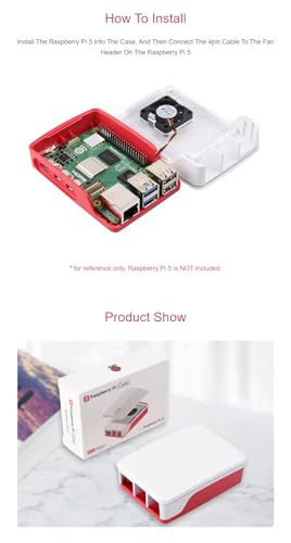 Coolwell Official for Raspberry Pi Case Fits Raspberry Pi 5 with Built-in Cooling Fan Red/White Color Precise Openings for Connecting