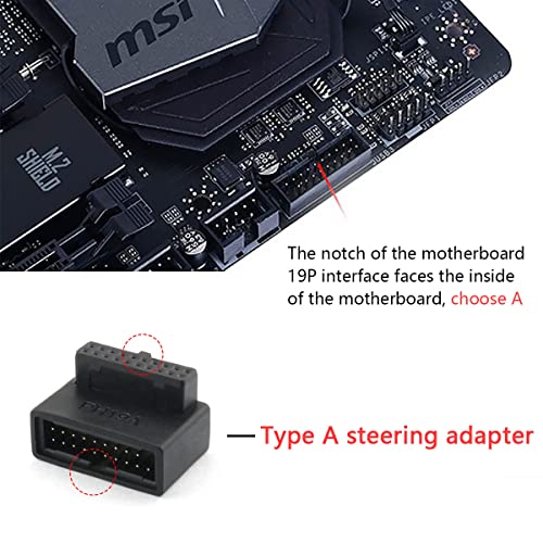 USB 3.0 19 Pin / 20Pin Male to Female Extension Adapter Up & Down Angled 90 Degree Overmold. The maximum speed is 5Gbps, which is 10 times faster than USB 2.0, and it also supports two-way data transmission. The installation direction of the USB 3.0 (19 / 20 pin) cable can be changed by 90 degrees L-shaped bending adapter. The builder no longer needs to wind or fold the cable back and forth on the motherboard, thus reducing the number of cables required in front of the motherboard tray. We have two angles: 90 degrees up and 90 degrees down. Please check your computer motherboard carefully (see the picture for details). Suitable for Asus Gigabyte micro star Onda into Dell HP Lenovo usb3 0 motherboards. To install the adapter, unplug the power cord and wait 10 seconds before installing. To avoid a short circuit between pin and motherboard.
