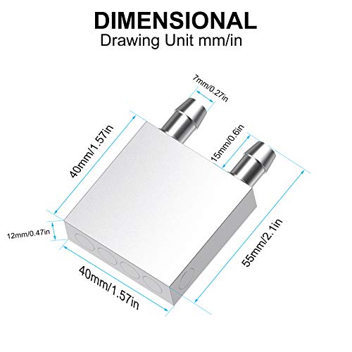 DIYhz Water Cooling Block Aluminum for Liquid Water Cooler Heat Sink System Graphics Radiator Heatsink Endothermic Head PC Computer CPU Silver (40mm x 40mm x 12mm)