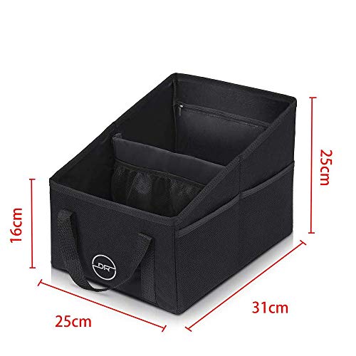 DOUBLE R BAGS Foldable Car Seat Accessories Passenger Seat Organizer for Console Front or Back or Trunk, Automotive Backseat Organizers dicky boot (Black, Polyester)