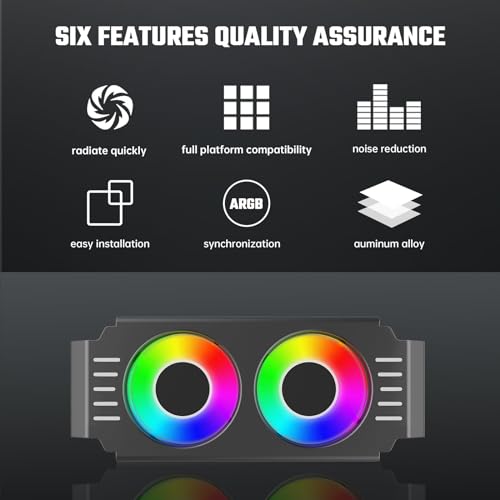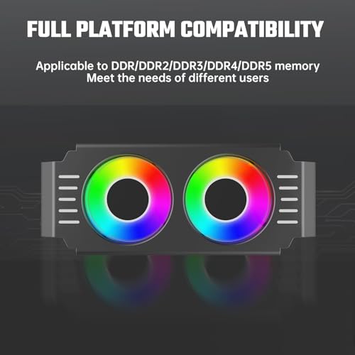 ????Efficient Memory Cooling Fan?Designed for computer gaming, this specialized ARGB memory cooler supports DDR/DDR2/DDR3/DDR4/DDR5 modules, making it an ideal choice for enhancing memory cooling performance. ???5V 3PIN ARGB Synchronized Memory Fan?Equipped with addressable ARGB LED lights, this memory cooling fan adds vibrant colors to your computer case, delivering an ultimate visual experience that enhances your setup. ????PWM Intelligent Temperature Control?Incorporating a dual hydraulic bearing fan design, each measuring 505010mm, this cooler supports motherboard 12V 4PIN PWM for precise fan speed control. Dynamically adjusts speeds from 1000RPM to 4500RPM. ????High-Quality Material Memory Fan?Constructed from thick aluminum alloy, the ARGB memory cooler excels in heat dissipation. Its tool-free design simplifies installation, offering a practical and efficient cooling solution for demanding gaming systems. ???High Airflow?Featuring a dual-fan design, this memory cooler supports up to four memory modules and generates up to 13.5CFM of high airflow, ensuring top-notch performance for gaming environments.