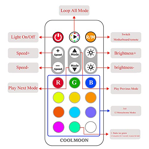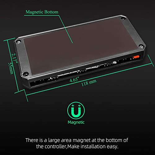 ?COOL APPEARANCE? This RGB fan controller looks like a sports car, adding more fun to your life and PC chassis. ?365 LIGHTING MODES? This ARGB controller provides approximately 365 lighting modes to choose from, meeting your different needs ?EASY INSTALLATION? This PWM fan temperature controller adopts magnet device on the back, it is easy to attach to the inside of the case and easy to install, suitable for 5v motherboard ?WIRELESS REMOTE CONTROL?The RGB fan controller is equipped with wireless remote control switch, which can be freely switched between master mode and remote control mode ?PRODUCT ACCESSORIES?The package contains RGB fan thermostat x1, SATA power cable x1, temperature control cable x1, motherboard sync cable x1