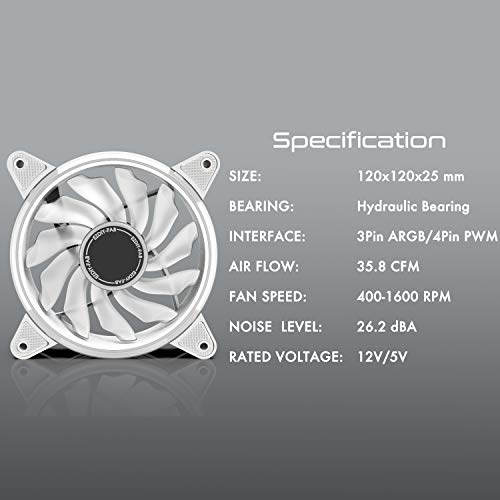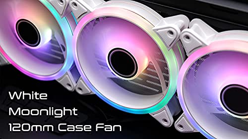 White Moonlight 120mm RGB PWM Case Fan-1 Pack (Compatible with 5V-3Pin RGB) Astonishing lighting effects-Tri-aperture inside and outside luminous light effect,Give out an impact visual light effect. Self-lubricated Bearing and friction-reduced substance lowers operation noise and enhance thermal efficiency