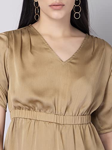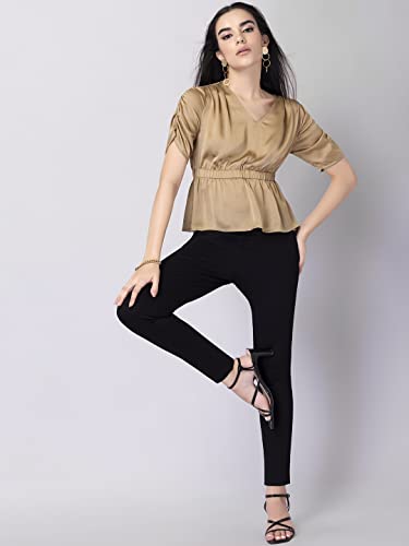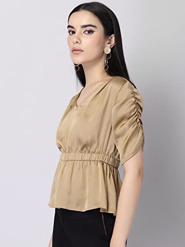 FabAlley Women's Solid Regular Fit Beige Textured Peplum Top