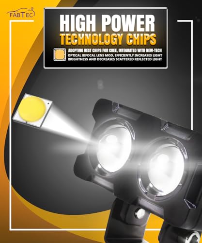FABTEC 2 Eye Mini Drive Led Fog Light Projector Light with White/Yellow Led DRL Light for Cars, Bikes, Scooty Metal Body with Turn On/Off Switch, Set of 2 Pcs