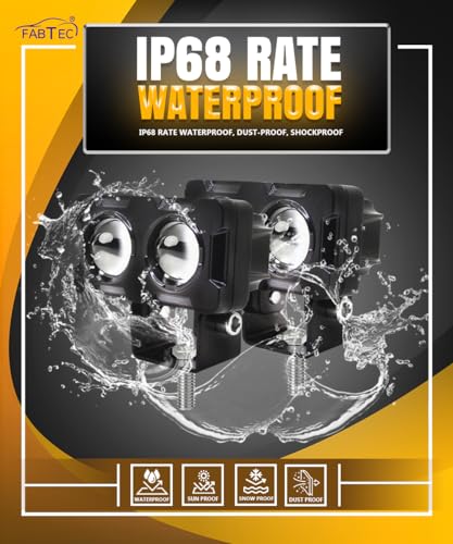 Super Bright Light: Auxiliary lights allows multi-angle refraction to get maximum light illmination, up to 9000LM, 30W one pair lights. Concentrated combo beam illuminates to further distance and wider range, lighting up the forward dark road, clear visible for you. 50,000 Hours Lifespan: The housing of the Zoom LED spotlight is made of aluminum alloy and is equipped to dissipate heat faster and more efficiently. The unique heat dissipation design effectively extends the lifespan over 50,000 hours. Adjustable Bracket: The LED spotlight using the supplied adjustable mounting bracket, the lamp can be adjusted to make it easy to change the direction of the beam. Efficient Cooling: High quality 6063 die-cast aluminum housing design, more heat sinks can increase the heat dissipation area ensuring fast cooling. Avoid overheating of the lamp body, ensuring long lifespan above 50, 000 hours. IP68 Rate Waterproof, dust-proof, shockproof. Multi Functions: Upgrade version of the two - color temperature chip. You can switch the white light as the driving light and the yellow light as the fog light. The ultra mini pods light can be mounted either on bumper as fog light and daytime running light, behind the grille for headlight, or on the hood, roof rack, motorcycle auxiliary light.
